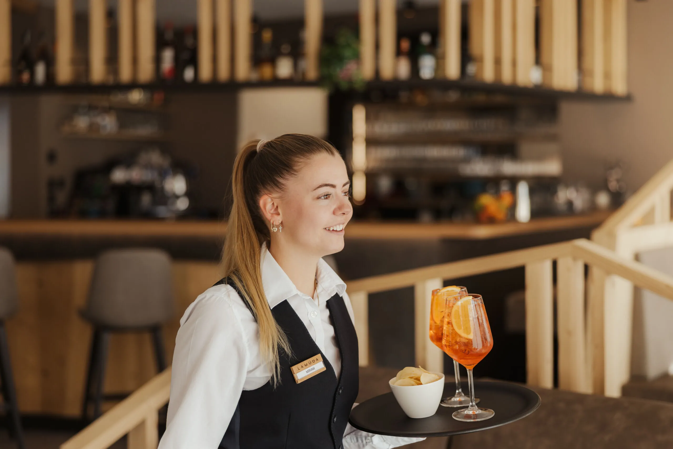 Was darf’s sein? Kaffee, Bollicine, ein guter Wein oder gar einen Cocktail? Bitte sehr. Ganz entspannt genießen.
